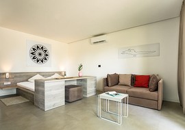 Osim prostranih parcela uz more i u hladovini crnike, resort nudi smještaj u sobama i apartmanima.