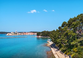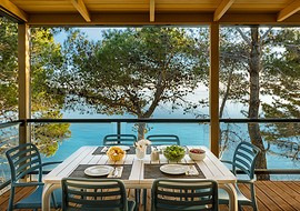 Gosti lahko izbirajo med urejeno parcelo s pogledom na stari del mesta Raba, neparceliranim prostorom za kampiranje v senci borovcev ali udobno camping home za dve do šest oseb.